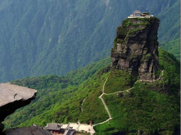 上午:乘車前往梵凈山。游覽武陵山脈主峰、中國五大佛教名山的 【梵凈山】 (不含梵凈山電瓶車 20 元/人,往 返索道 140 元/人,必須消費敬請自理) (游覽不少于 4 小時)、1986 年被列為國家級自然保護(hù)區(qū)、是聯(lián)合國“人與 生物圈”保護(hù)網(wǎng)成員,乘坐纜車接近山頂欣賞靈山奇石: 【翻天印,鳳求凰,萬卷書,思過崖,九皇洞等】,一路尋 找黔金絲猴和鴿子花的身影,帶著虔誠的心到 【承恩寺、燃燈殿,釋迦彌勒殿】祈福。面向佛山之核心— 【紅云金頂】:參悟現(xiàn)在,憧憬未來(登金頂山路陡峭,有一定的危險性,請游客根據(jù)自身身體情況選擇),觀梵凈山的標(biāo)志景點— 【蘑菇石】。登上山頂,一覽眾山小,在云霧虛無縹緲之間,放空自我。