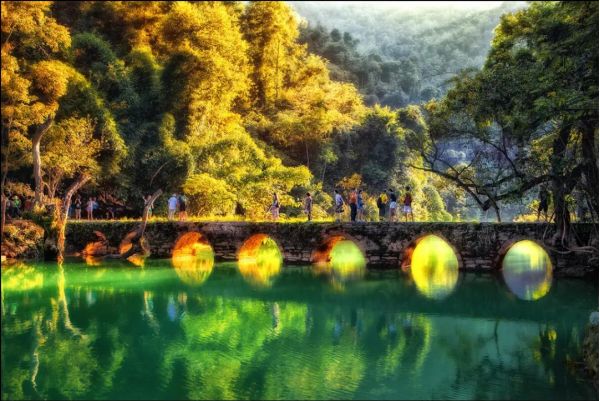 早餐后前往國(guó)家AAAAA級(jí)風(fēng)景區(qū)【小七孔】(游玩時(shí)間約4小時(shí));景點(diǎn)之間需換乘電瓶車(電瓶車40元/人,景區(qū)保險(xiǎn)10元/人,費(fèi)用自理)小七孔景區(qū)因一座建造于道光十五年間(1836年)的【小七孔石橋】而得名;景區(qū)被稱之為“超級(jí)盆景”,集山、水、洞、林、湖、瀑布等為一體,在長(zhǎng)不到2公里的峽谷內(nèi),起迭著68級(jí)瀑布,順贄而下,奔瀉而去【68級(jí)跌水瀑布】。【拉雅瀑布】精巧醉人,水珠飛濺;而長(zhǎng)不到600米之水上森林,樹根盤在錯(cuò)石上,清澈的水流沖刷著青石,行走于其中,若身臨瓊瑤仙池。拱壩截水而形成的【臥龍?zhí)?/strong>】水從壩頂傾瀉下來,如一道銀色的水簾掛在眼前,壯觀而又秀美,水面經(jīng)過吸收、反射和折射,呈現(xiàn)各種藍(lán)色,真是美如仙境。