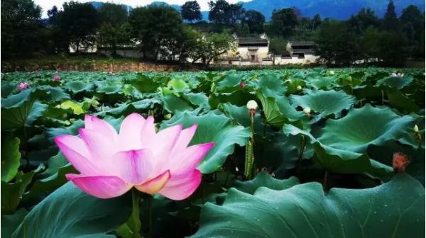 推開門,豁然開朗,一大片的荷塘便呈現(xiàn)在眼前,難怪它在開業(yè)之前就火爆了整個民宿圈,單單是這進門的地方就私藏了整個夏天的風(fēng)光!
