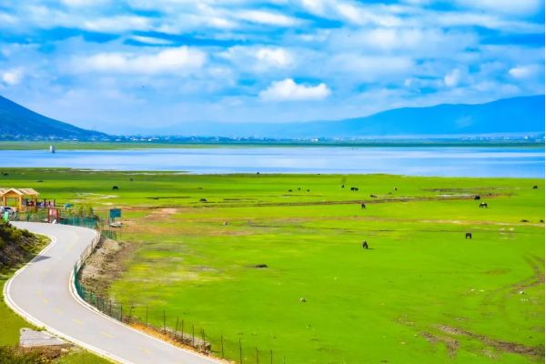 在香格里拉市6公里開外有這樣一個地方,地勢平坦、三面環山, 那曲河、奶子河等十余條河彎彎曲曲,流經草原注入這里;在夏末秋初豐水期時大量積水形成了大面積湖面,這便是【納帕海】,而在枯水期湖面縮小時這里就變成大片的沼澤草甸,成為“迪慶香格里拉最大最美的草原”——【依拉草原】。這水草豐茂的草原如內蒙古大草原一般遼闊,有“香格里拉后花園”“大西南的塞北風光”之稱,一望無際的草原,星羅棋布的牛羊馬,穿梭期間的著藏裝的牧民,純粹澈靜的湖泊,蔚藍高曠的藍天,還有滿地叫不上名的野花匯成一片海,很容易就讓人醉進去,與牛馬同呼吸,共天地一顏色。感興趣的小伙伴還可以騎馬馳騁草場之上,不過務必要注意自身安全哦。