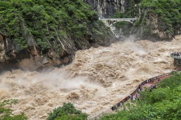 金沙江經長江第一灣之后忽然掉頭北上,從哈巴雪山和玉龍雪山之間的夾縫中硬擠過去,原本平靜祥和的江水頓時變得怒不可遏,形成了世界上最壯觀的大峽谷,而峽谷中最窄的地方就是我們今早的目的地——聞名天下的【虎跳峽】 。我們的團期覆蓋虎跳峽最壯美的汛期,震撼的視覺沖擊能瞬時將你驚得無言,狂怒的江水拍打著崢嶸亂石,激起沖天水柱和浪花, 浪與岸、浪與岸之間碰撞發出雷霆般的轟鳴,空氣中也滿帶著泥沙味道。在大自然的鬼斧神工面前,人是如此渺小和微不足道。