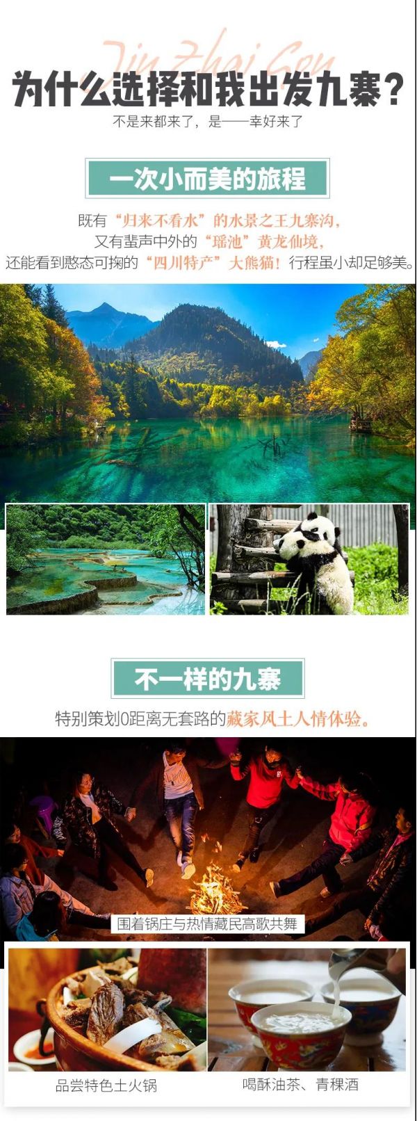 4、九寨溝景區實行分區域開放,開放區域為溝口經諾日朗瀑布至長海,扎如溝的扎如寺及日則溝的鏡海;其中,長海、五彩池、鏡海、諾日朗瀑布、樹正群海、雙龍海瀑布、扎如寺等景觀原則上為步行游覽區,具體游覽方式請聽從隨車講解員安排;