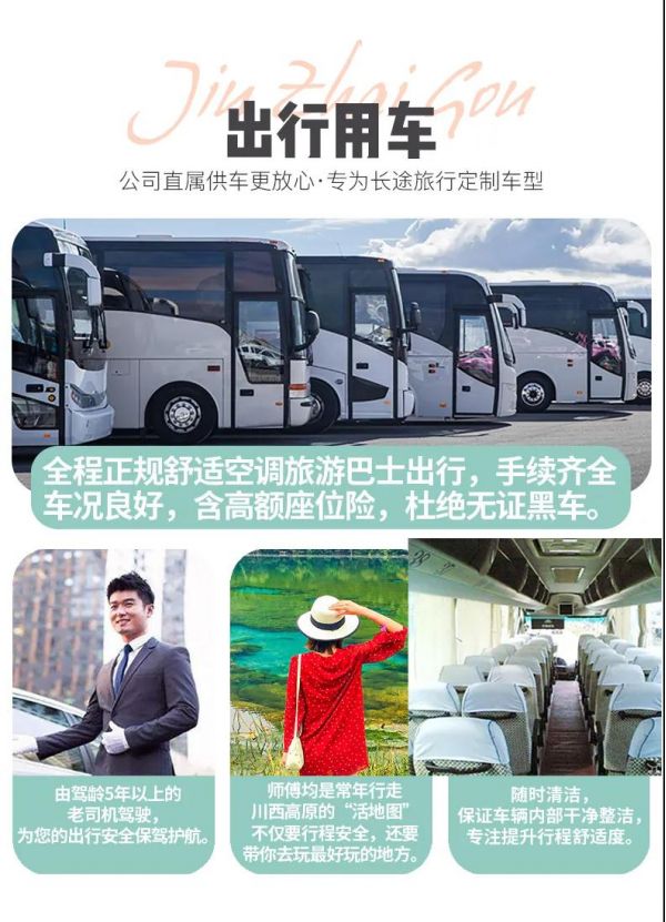 1、關于車輛交通:目前四川旅游市場8座以下車輛無法辦理旅游牌照,請游客知悉,以此理由提起的投訴我方拒不受理,望您諒解。