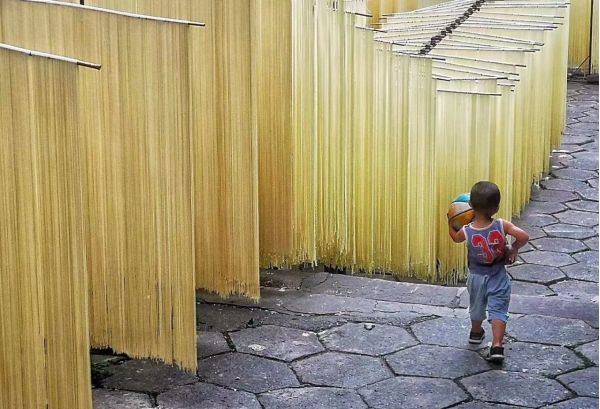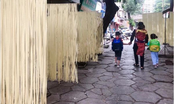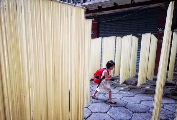上午我們在老街上拍攝曬面的場景,家家戶戶都在制作手工的面條,一排排的晾曬在逐級而上的臺階晾曬;學生、百姓穿梭其間,滿滿的的百姓生活氣息;下午前往福寶古鎮,這里依山傍水而建的民居是佛寶古鎮的一道風景線,隨水而陡纊故有許多吊腳樓。傍晚的老街,常伴一盞小燈旁。