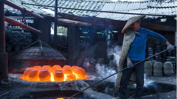 川南的市集滲透著區域百姓柴米油鹽的生活百態,我們也和他們一起穿梭,感知人間百味;然后去往千年的醬園釀造作坊,時至今日,赤水河畔35度的山坡上,整整齊齊地排列著4000多口曬露缸。百余年來持續不斷的釀造傳承,日悉心照料,攪拌翻曬,形成了最獨特的風味以及難得一見的場景。拍攝結束后前往滎經,下午在滎經拍攝老街道、已經手工制作陶瓷的場景。