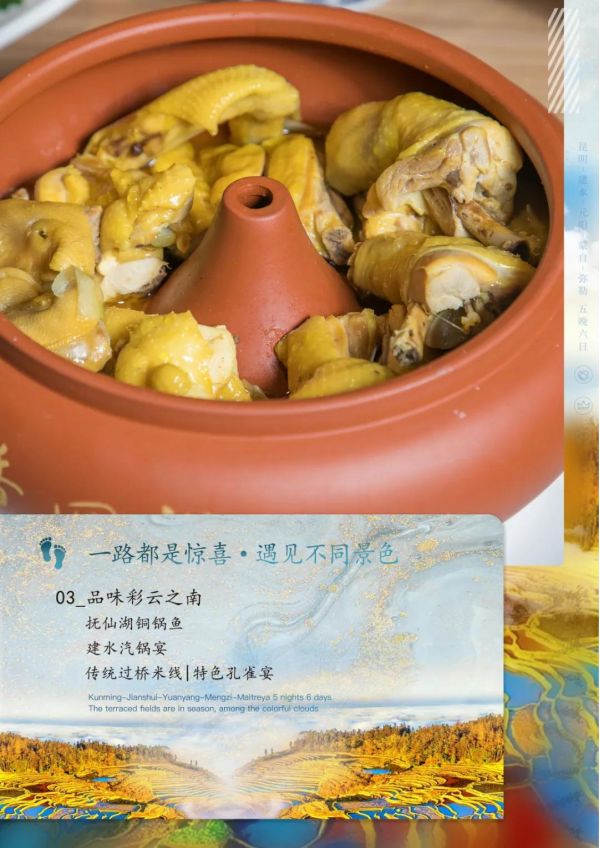 早餐:自助 午餐:銅鍋魚 晚餐:建水汽鍋宴