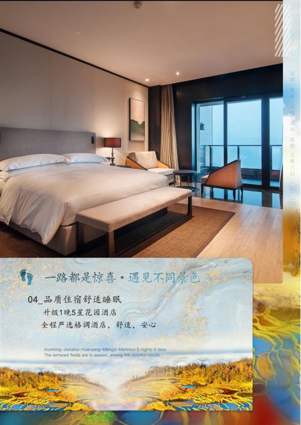 1.住宿:指定當地待評4星酒店+石林1晚戶外溫泉泡池酒店,雙標間;