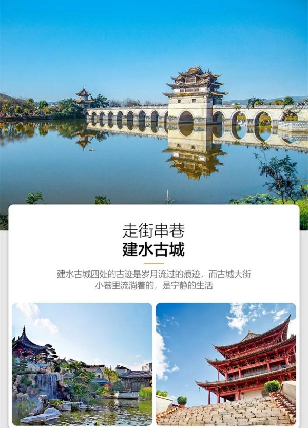午餐后,前往建水古城,游覽清代名宅【朱家花園】,朱家花園是一組保持完好的清代私人建筑群,具有豐富文化內涵又稱“滇南大觀園”。后參觀建水西門大板井,自元初明代洪武年間,歷經了千年的滄桑歲月,古井不但記載著建水的歷史,同時也是古城儒家文化興盛的印證。