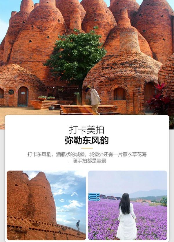 后前往彌勒,游覽【東風韻】(含電瓶車),被稱為東方波爾多,萬畝碧綠的葡萄園,夢幻無際的紫色薰衣草,醉了每一個走進東風韻的人,順著中國最大的的紅磚建筑群萬花筒藝術莊園,一路走來,藝術的熏陶和美麗的風景融為一體,讓您感受難得的東風韻。游覽結束后入住石林溫泉酒店,體驗溫泉給身心的放松。