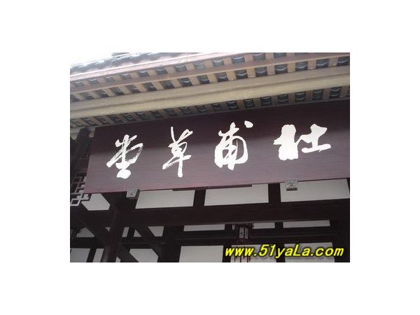 《春夜喜雨》、《茅屋為秋風所破歌》等就是在這里寫的。為了紀念這位偉大的詩人,北宋以來,就有人在詩人故居處建園立祠,供人瞻仰。當年杜甫居住的草堂早已不存在了。現在的草堂,實際上是后人為紀念杜甫而建的一所優美園林,園林總面積約300畝,梅園楠林,翠竹千年。溪流小橋交錯庭中,使詩人故宅增添無限詩情畫意。
