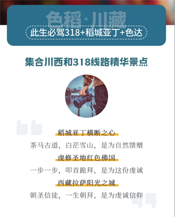 私人訂制:我們業務范圍囊括了全國各大城市,川西、西北、新疆、西藏,在路上永遠有我們的身影。我們將為每一個有定制需求的你策劃出獨屬于自己的完美旅行。