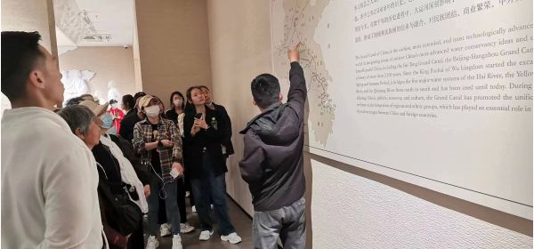 首先,講解組的各位成員首先來到的是中國運河文化博物館,跟隨旅行團一起傾聽運河博物館的文化,并從中學習講解員的語言、動作、手勢等。講解員解說時擁有強大的語言駕馭能力,能夠將抽象的內容具體化,通過一個個的動人的運河故事,引起我們的興趣。