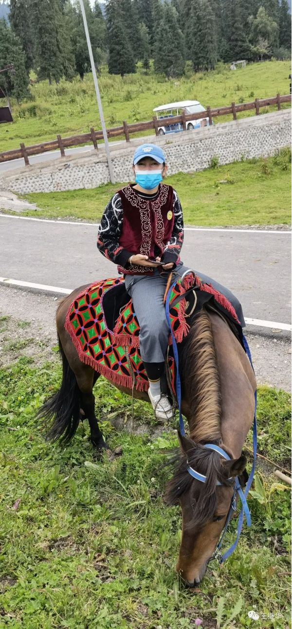 是一個年輕漂亮英姿颯爽騎馬的姑娘。她看到我們看她驅馬過來,友好的向我們一笑,在馬上和我們攀談起來。她說自己今年29歲。