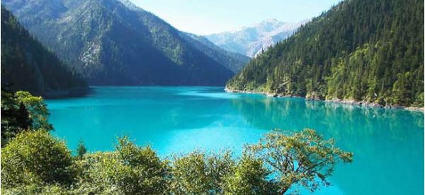 九寨溝最大最深的湖泊要數長海。它長約8公里,最寬處約4.4公里,面積約200萬平方米,海拔在3000米以上,也是九寨溝最高的湖泊了。長海水面寬闊,地表無出水口,但夏秋暴雨,水不漫堤,冬春久旱,亦不干涸。真是神秘莫測!長海盡頭連綿的山峰終年積雪,銀裝素裹,靠近岷山山脈的主峰,海拔都在四五千米。海子四周青山寂寂,綠水幽深,使湖水顯得格外澄碧。水面常有長頸水鴨子棲息,自由翱翔,上下翻飛,好像與游人逗趣。春秋時節,長海景色更加迷人:水中琉璃世界,在春日倒映出百花簇擁的雪山,斑斕金秋則映襯著層巒疊嶂的黃櫨紅楓;隆冬一到,四面瓊花玉樹,迷漫一色,叫人嘆為觀止。此時的長海變成冰湖,湖面冰層厚達60厘米,連載重汽車也能在冰面上開行。從長海下行1公里即為五彩池。這段山路海拔3000米,五彩池就深藏于公路下邊的深谷中。五彩池海拔2995米,深6.6米。五彩池雖在九寨溝眾海中最小巧玲瓏,然而它的色彩卻是最為斑斕,與五花海不相上下。五彩池異常清澈,透過池水,可見到池底巖面的石紋,由于池底沉淀物的色差以及池畔植物色彩的不同,原本湛藍色的湖面變得五彩斑斕。