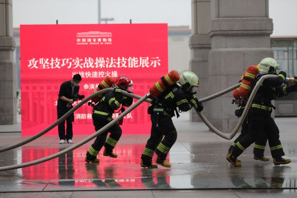 本次演練在國博黨委領導下,聯合北京市公安局天安門地區分局、北京市天安門地區消防救援支隊、北京市東城區消防救援支隊、北京市西城區消防救援支隊、北京市特勤支隊、武警北京總隊執勤第一支隊共同實施。演練通過刺殺操方陣、安檢應急處突能力、一警六員培訓成果、攻堅技巧實戰操法技能、展廳滅火疏散演練、滅火救援聯合訓練等科目展示,實戰模擬了警戒疏散、現場救援、應急指揮、部門聯動等環節,全面檢驗了安全保衛技能技術和安全管理科學規范水平,有效提升了對突發公共安全事件應急處置的綜合能力。