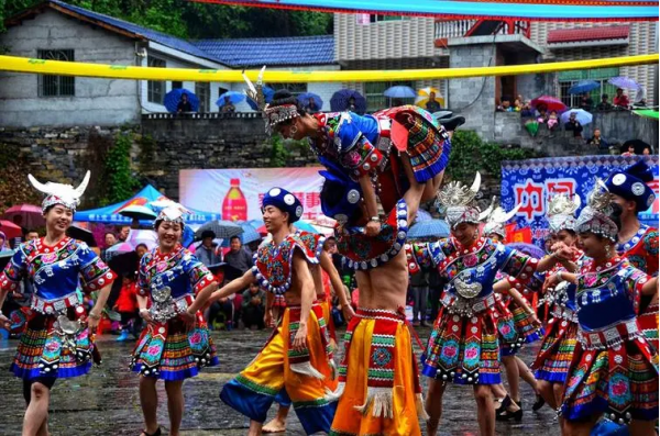 當天,苗歌“飛”天,鼓聲“震”地,馬鞍山苗寨跳花坪主會場上人山人海,熱鬧非凡。活動在大型鼓舞表演《弦歌凱鼓頌升平》中拉開序幕。隨后,《喜慶豐收》《長城頌歌》《跳花跳月》等苗族原生態民俗節目精彩上演,涵蓋花鼓、苗舞苗歌、苗族銀飾服飾、苗族武術等,臺下掌聲連連,處處歡聲笑語。最后,苗族同胞與游客一同“跳花跳月”,演繹濃郁民族風情,共慶苗族傳統佳節。