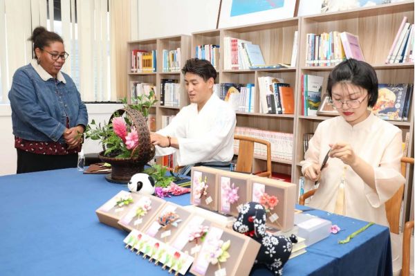此外,南京剪紙非遺傳承人張鈞還用精湛的技藝現場剪出了斐濟的國花——扶?;?,贏得現場觀眾陣陣掌聲。