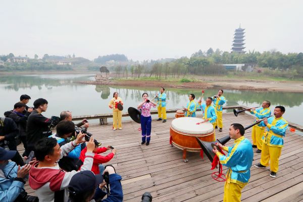 張秋霞說,近年來,為推動非遺項目的活化利用,萬盛經開區將“金橋吹打”引入青山湖國家濕地公園,面向游客進行展示?!敖饦虼荡颉边M景區,讓更多外面的人了解了萬盛這種古老的文化。