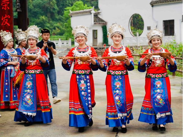 鑼鼓陣陣,舞獅相迎。在距離吉首市區20余公里的矮寨鎮中黃村,一道“攔門酒”,表達了苗家人對貴客的祝福。