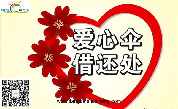 聊之旅國際旅行社為大家提供了愛心傘借還點。為了讓我們的愛心傳遞的更長久,我們必須形成良性循環。實行借還制度。請務必在三天之內歸還,已方便其他人使用。