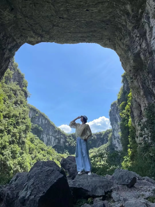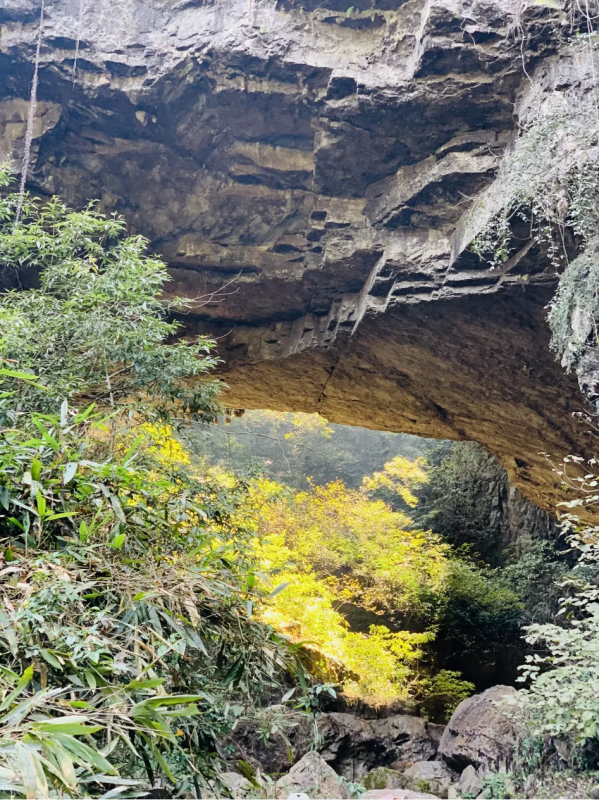 下午我們前往首車鎮豬鼻山徒步,這是一個完全未被開發的地方,只有當地人才知道,我們在小路一路下行,一級一步循著古人的腳步,踏出的是輪回和歲月。接著便來到今天的徒步精華--天生雙橋,行走于巨石上,腳踩億年前的巨石褶皺,感受自然的鬼斧神工。