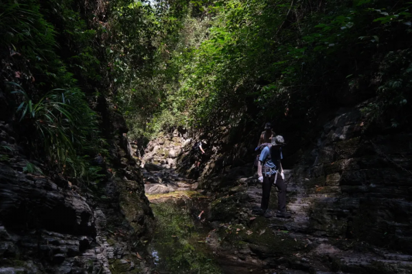 檳榔谷是一個因低調而被低估的徒步寶藏之地,有著最經典的穿越地貌,旱洞連水洞,兩洞連天坑。穿過第一個洞之后,優山美地間突現一片水草豐美的鸚鵡洲,徜徉著三三兩兩的牛羊吃著草談著戀愛。沿著溪流徒步在這避世之所,清風歡笑間,能讓人馬上忘記都市繁華與市井煩惱。