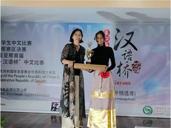 經過激烈角逐,來自圭亞那大學孔子學院的李曉雅和趙月生脫穎而出,分別獲得特等獎和一等獎,并將被推薦赴華參加本年度“漢語橋”世界大學生中文比賽全球決賽。