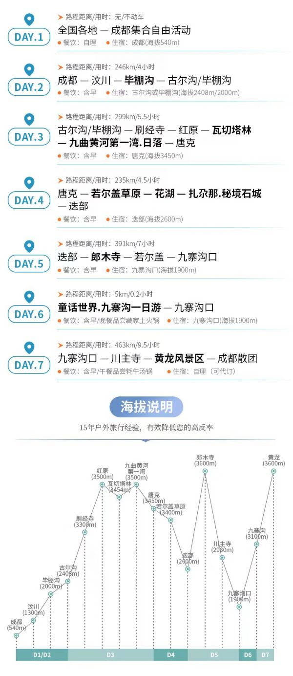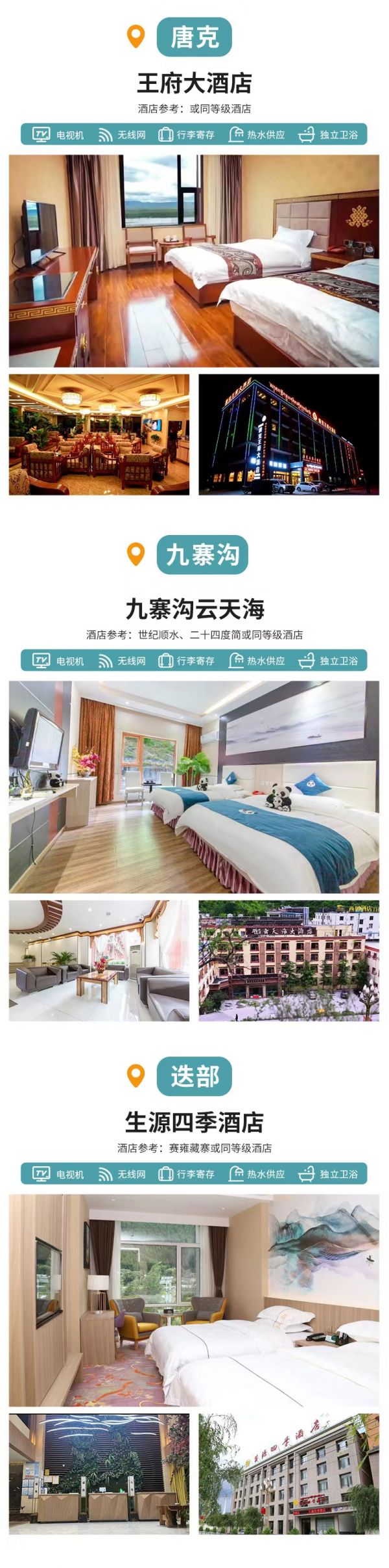 3、九寨溝面積較大游客需求不一,因此主要以游客自助游形式游覽,如無領隊陪同望您諒解。游覽開始前領隊會與您約定好集合時間,請務必按時到達指定地點,避免耽誤大家接下來的行程;
