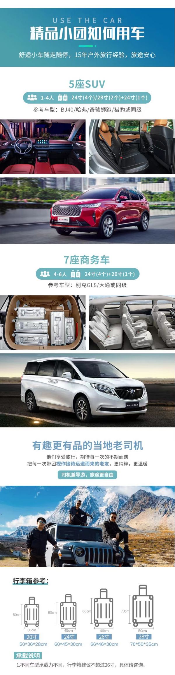 4、如途中遇不可抗因素(如高原反應、修路、塌方、車輛事故阻礙等)我方有權根據情況調整行程線路走向,此舉均是根據帶隊經驗為大家更順利的游玩而做出的改變,希望大家理解和支持,但如造成額外費用由客人自理,望您諒解;若對行程造成影響的,我方將全力協助游客進行解決,但不承擔由此造成的損失,若因此而增加的費用,敬請游客自理。