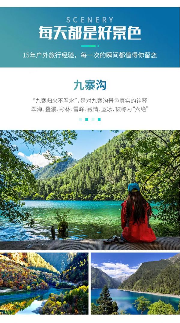 4、九寨溝景區實行分區域開放,開放區域為溝口經諾日朗瀑布至長海,扎如溝的扎如寺及日則溝的鏡海;其中,長海、五彩池、鏡海、諾日朗瀑布、樹正群海、雙龍海瀑布、扎如寺等景觀原則上為步行游覽區,具體游覽方式請聽從隨車講解員安排。