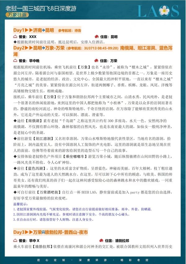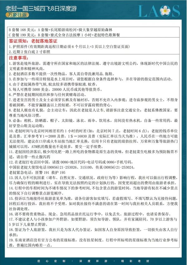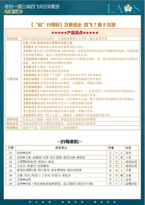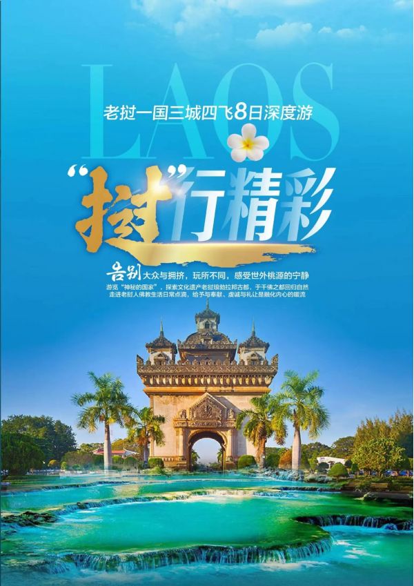 老撾四飛8日游 聊城發團 純玩 無購物 大皇宮 光西瀑布 坦江溶洞 藍色瀉湖 凱旋門 價格 4380 4680 報名電話 0635 8681234