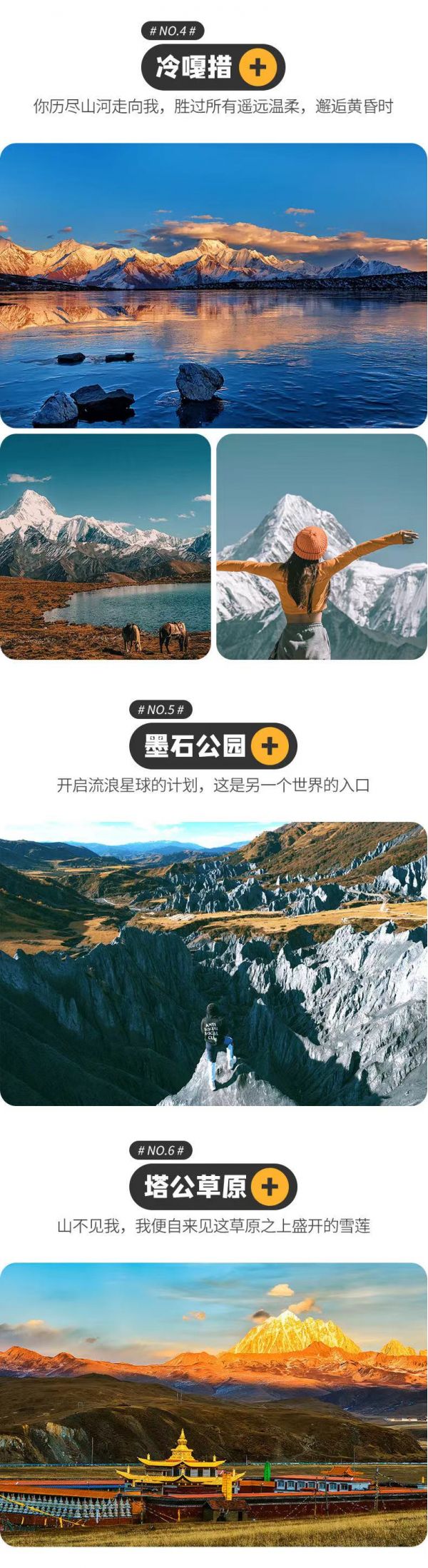 格底拉姆.魚子西.新都橋.泉華灘.冷嘎措.子梅埡口.月亮湖.蓮花湖.墨石公園.塔公草原