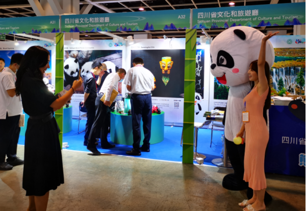 四川展位前,憨態可掬的大熊貓、“沉睡數千年,一醒驚天下”的三星堆文化、“童話世界”九寨溝、“人間瑤池”黃龍、“東方圣山、人間天堂”四姑娘山、“藍色星球的一片凈土”稻城亞丁、樂山峨眉山、春節文化等豐富的文旅品牌和產品吸引了眾多旅行商咨詢。