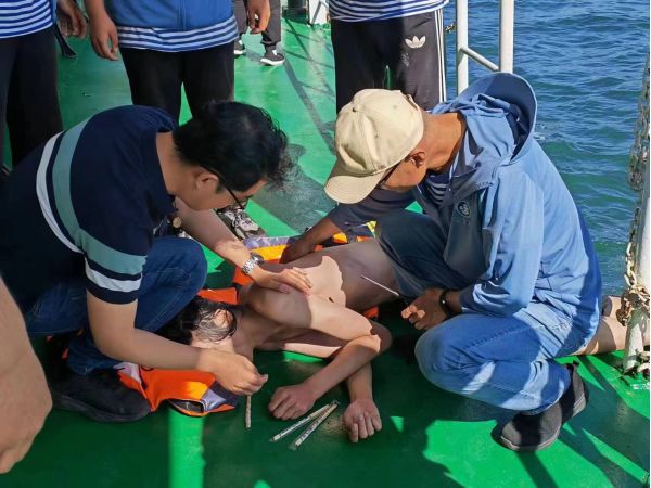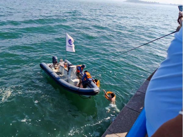 據了解,三名落水者均是大學生,一名大學生先落水,兩名學生先后去救助均遇險。當時海上風大水涼,一名落水者已經失去意識,另外兩名也體力嚴重透支。在聽到呼救聲時,銀海格曼海上交通娛樂中心經理賈平正在碼頭工作,憑借多年海上救援的經驗,他立刻安排帆船部經理焦寅生、船長劉海天兩人駕艇迅速前往落水者海域實施海上救援,并用對講機全程指揮了海上救援過程。當時,兩名船長拋出救生圈后,先將處于昏迷狀態的青年營救上船進行控水急救,隨后將另外兩名落水者營救上岸,整個海上救援總共用時三分鐘。三名落水者被救上岸后,等在岸上的賈平和船長王其剛立即對落水者實施搶救,直至三名學生最終恢復生命體征,脫離危險。在場目睹救人的市民和游客對這種見義勇為的行為紛紛點贊拍手叫好。