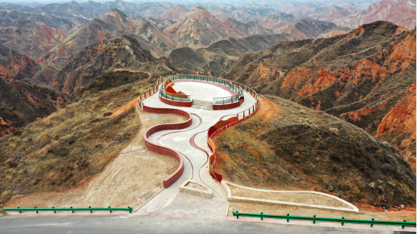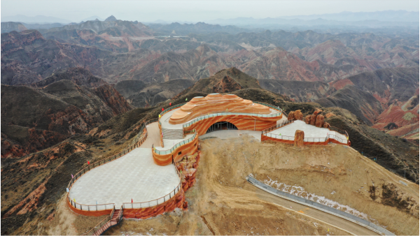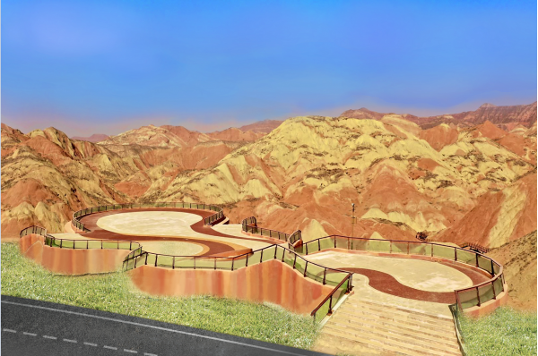 絲路霞光觀景平臺以丹霞風貌作為設計背景切入,大面積采用流線型設計手法,將一帶一路的精神貫穿始終