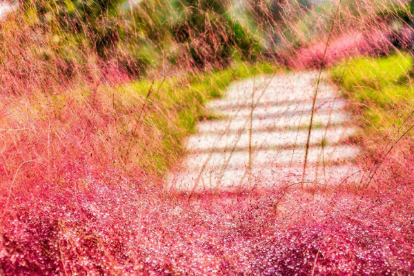 粉黛亂子草有著極強的觀賞性,11月初,它株高可達30到90厘米,每到金秋時節(jié),粉紅色的花穗如同發(fā)絲從基部長出,形成近乎純色的花叢在綠葉的襯托下極具美感。