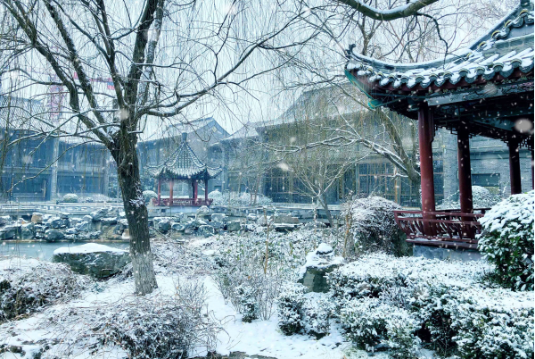 昨天晚上八點五十那會開始下的,一開始下得小,這會已經(jīng)是鵝毛大雪了。雪邊下邊化,這會地上已經(jīng)濕了。