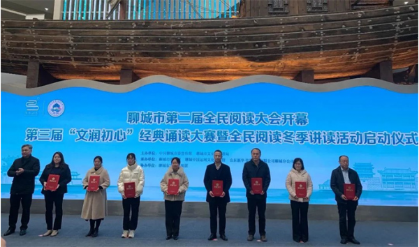 祝賀度假區(qū)湖西街道端莊社區(qū)獲得山東省第八屆全民閱讀先進典型“書香社區(qū)”榮譽稱號,聊城市共2個,全省共40個。張娟、王利、趙軍萍等7人獲得市級“閱讀推廣人”榮譽稱號;陳俊麗獲得2023新時代鄉(xiāng)村閱讀季“我愛閱讀100天”優(yōu)秀農(nóng)家書屋管理員榮譽稱號。在聊城市第二屆全民閱讀大會開幕上,省、市相關(guān)領(lǐng)導(dǎo)為獲獎代表頒發(fā)了獎牌和榮譽證書。
