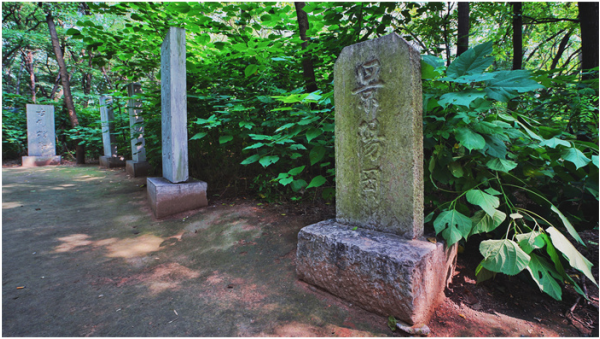 虎嘯亭:位于景區西部,六角單檐,由徐悲鴻的夫人、書法家廖靜文題名。