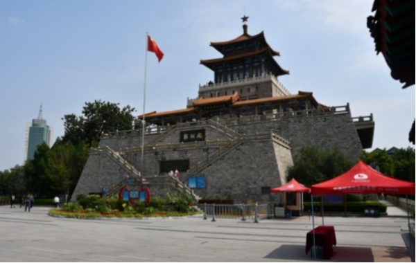 解放閣位于濟南市歷下區(qū)黑虎泉路東首,省級文物保護單位。閣高24.1米,連臺基通高34.1米,占地1637.2平方米,建筑面積617.2平方米。臺基東側(cè)貼壁立有“解放濟南戰(zhàn)役革命烈士紀念碑”,鐫刻著在濟南戰(zhàn)役中壯烈犧牲的3764位烈士的英名。