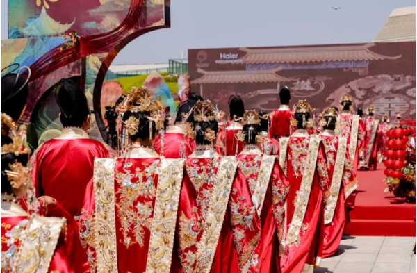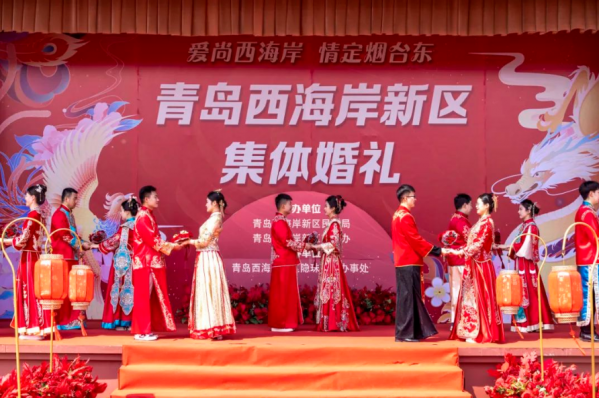 在青島,經過五年的培育發展,建設新時代結婚禮堂132處,組織集體婚禮806場,共有2000余對新人參加。