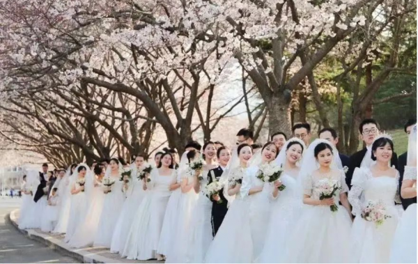 中國海洋大學在櫻花樹下舉辦2024校友集體婚禮