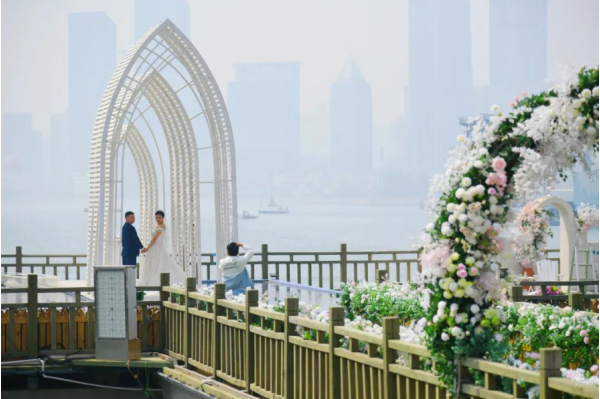 獨有的儀式感、濃郁的喜慶氛圍,為城市增添了風景,為景區增加了流量,而那些見證愛情的景觀,不少成為網紅打卡點。