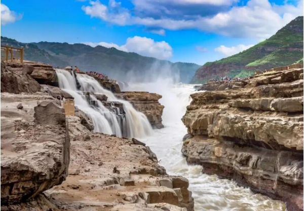 觀賞黃河壺口瀑布,其奔騰洶涌的氣勢如同中華民族的精神。它西臨陜西省延安市宜川縣壺口鄉,東瀕山西省吉縣。黃河至此兩岸石壁峭立,河口收束狹如壺口,故名壺口瀑布。瀑布落差9米,蘊藏豐富的水力資源。奔騰的黃河水聲震天地,絢麗的彩虹美輪美奐,輕煙生水底,黃河壺口美麗的自然景觀讓游人們流連忘返。