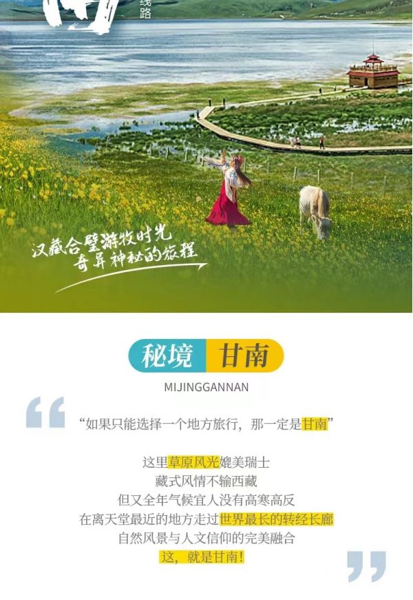 即日起甘加秘境門票內暫不包含白石崖寺、溶洞,如需要游覽寺院內或進溶洞需要另行購票。購買(車票+門票)套票的游客按景交車固定路線游覽,可前往八角古城站、白石崖寺前站,白石秘境觀景臺、路過星空草原到達游客服務中心,作海寺可自行前往,給廣大游客帶來不便,還望諒解。)