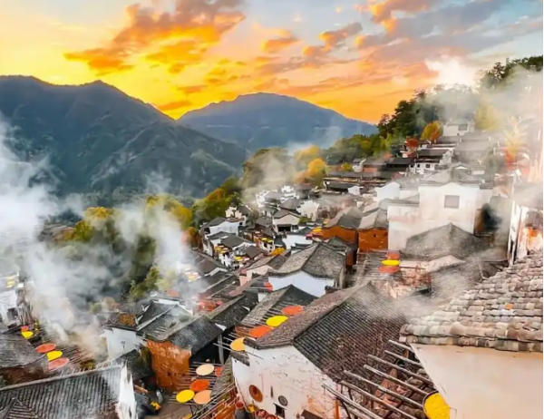 登上篁嶺的觀景臺,拍攝整個(gè)古村的全景,包括遠(yuǎn)處的山巒和梯田。可以利用不同的光線角度,如側(cè)光來突出建筑的立體感。還可以拍攝古村中的村民生活場景,如老人在門口曬太陽、婦女在溪邊浣洗等。