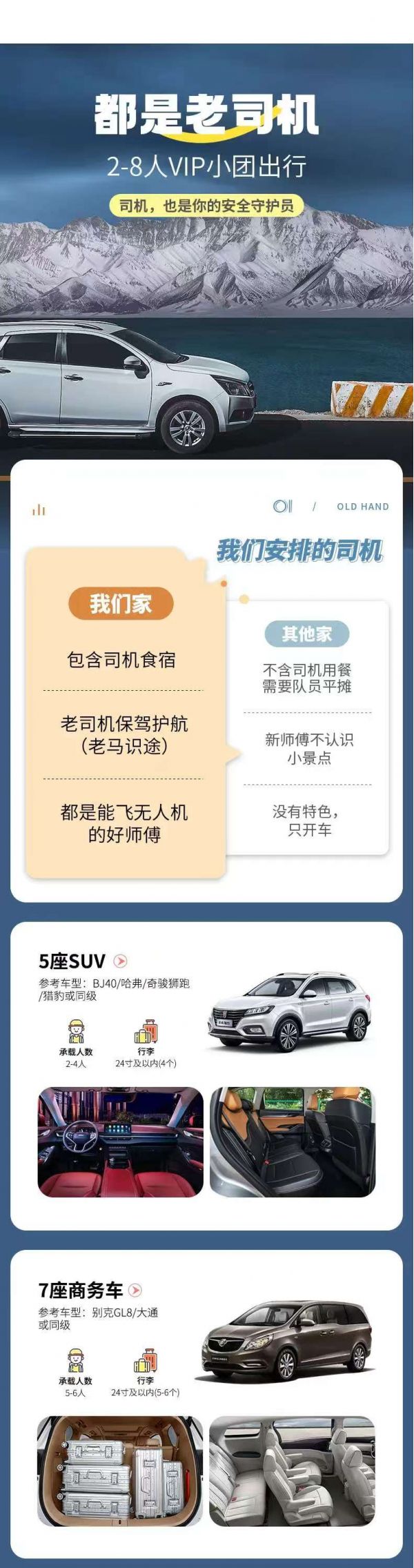 為保證成團(tuán)及質(zhì)量,根據(jù)人數(shù)派不同座位數(shù)用車,保證每人一正座;