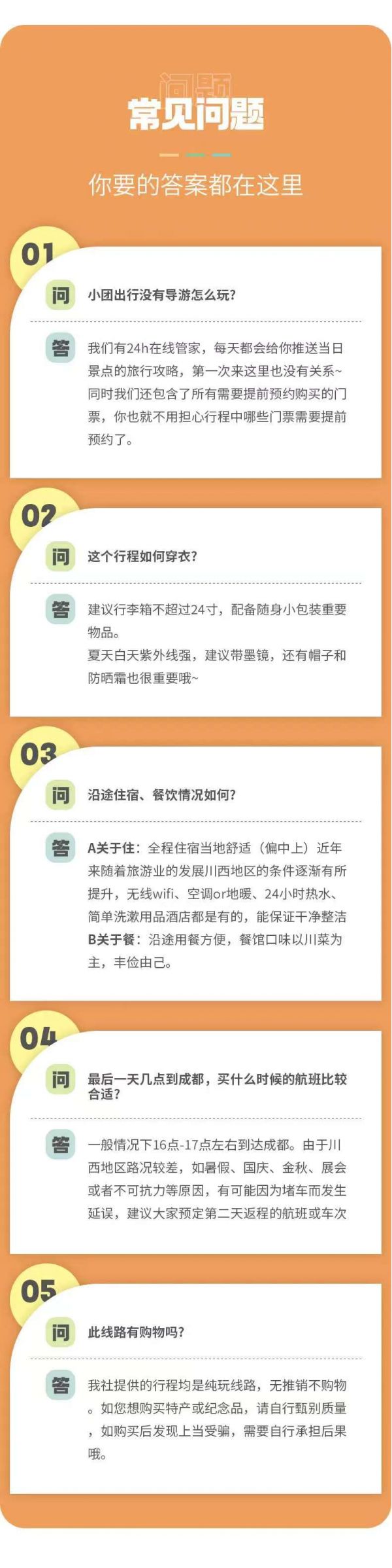 返回成都統(tǒng)一散團(tuán)(由車上游客協(xié)商一致送至統(tǒng)一散團(tuán)點(diǎn),若協(xié)商不成則由司機(jī)送至三環(huán)內(nèi)就近地鐵站散團(tuán)),結(jié)束本次愉快的旅行。由于川西地區(qū)路況復(fù)雜,有可能因?yàn)槎萝嚩l(fā)生延誤,請(qǐng)大家盡量預(yù)定第二天返程的航班或車次。