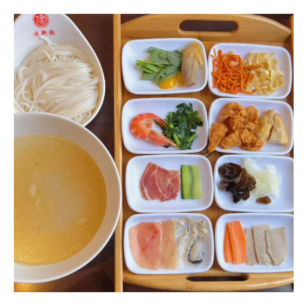 - 湯:用豬筒骨、老母雞等食材長時(shí)間熬制而成,湯鮮味美、滾燙濃郁。