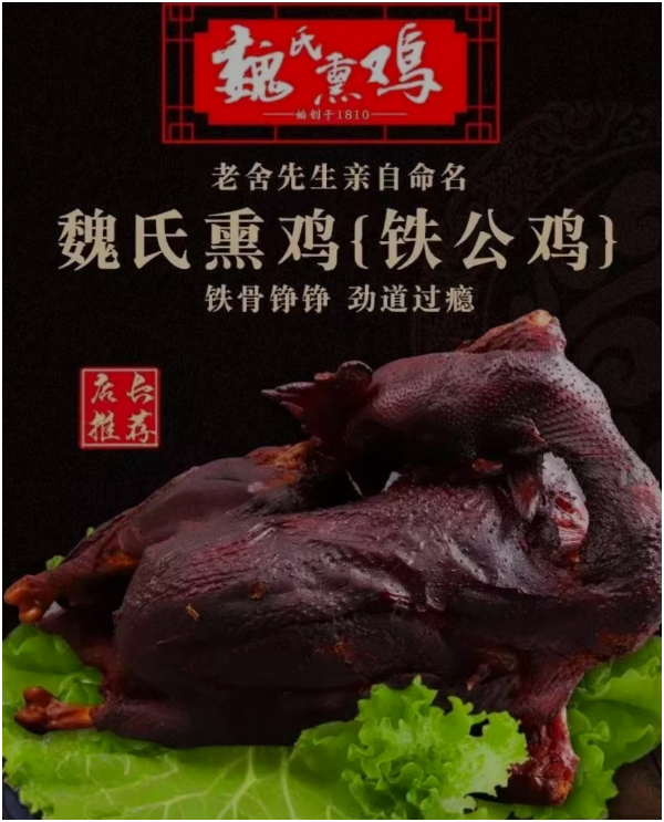 自此,魏氏熏雞代代相傳,歷經(jīng)七代傳人,已有200多年的歷史。魏氏熏雞歷經(jīng)七代傳承,不斷豐富和發(fā)展了餐飲文化,成為魯菜中的代表。其先后被評為1991年廣州商品交易會(huì)最佳地方名吃、1997年中國山東旅游博覽會(huì)優(yōu)秀旅游商品、2002年中國江北水城(聊城)文化旅游節(jié)指定產(chǎn)品等。2009年,魏氏熏雞被列入第二批山東省非物質(zhì)文化遺產(chǎn)名錄。此外,魏氏熏雞還曾被老舍等著名作家品嘗并贊譽(yù),被譽(yù)為“聊城鐵公雞”。